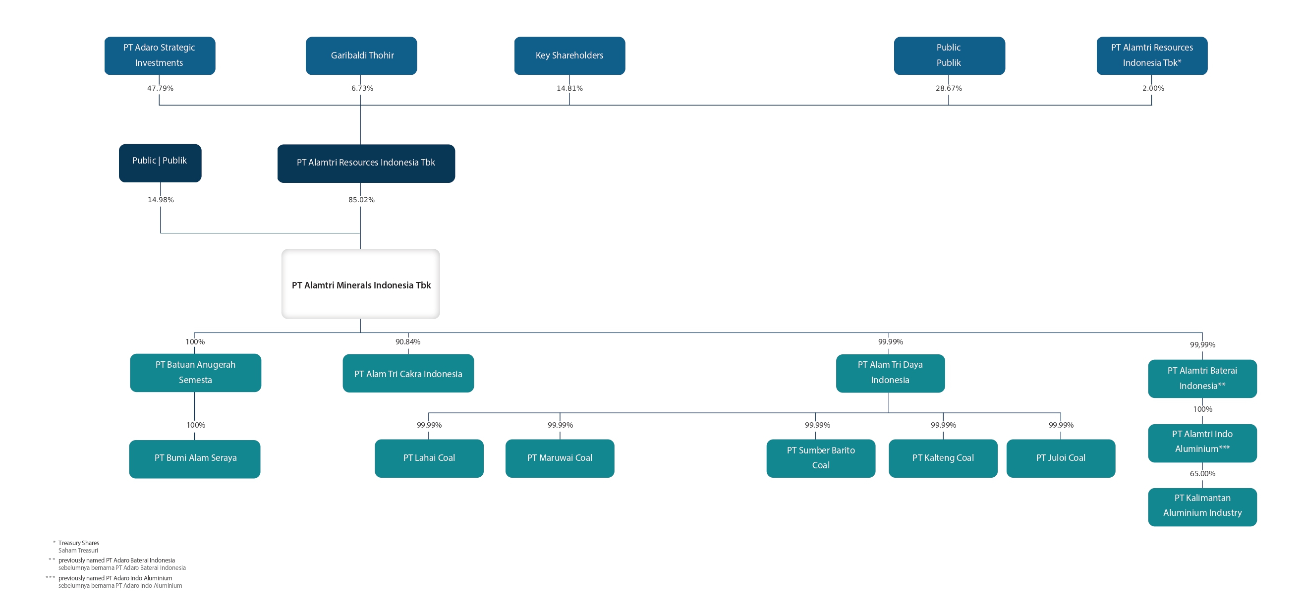 ATDI was founded in 2021 and is 99.99% owned by PT Alamtri Minerals Indonesia Tbk ("AMI" or "the Company"). ATDI's line of business include head office activities and related management consulting. To achieve these purposes and objectives, ATDI carries out business activities in the field of supervision and management of corporate units, strategy development or organizational planning and decision making of a company, as well as providing advice, business guidance, and operations, and other organizational and managerial matters.