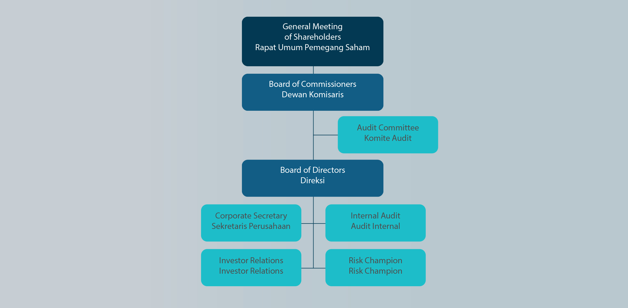 The application of good corporate governance is represented by the company’s various governance guidelines, such as Code of Conduct, Charter of the BoC, Charter of the BoD, Charter of Audit Committee, Charter of Internal Audit, and other policies supporting consistent and sustainable GCG application.